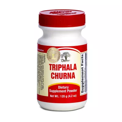 DESCRIPTION: Dabur Triphala Churna is an ayurvedic formulation for indigestion with high laxative properties and is known for its colon cleansing and detoxifying actions. It is a rich source of vitamin C, calcium, iron, and zinc. The formula is beneficial for digestive problems and helps maintain overall health by harmonising digestive functions and cleansing the stomach.