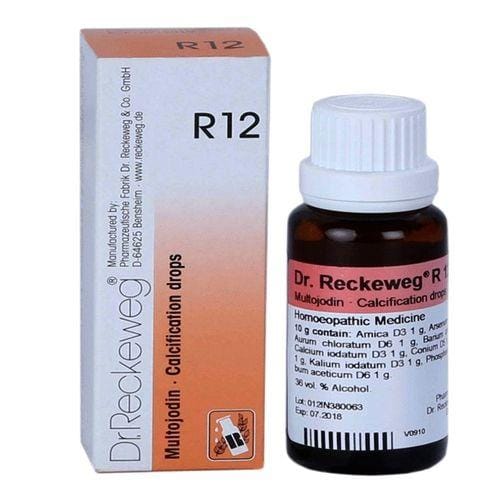 Dr.Reckeweg R 12 drops has a proprietary blend of homeopathic ingredients like arnica, aurum chloratum etc in drops forms. It addresses the issues of general arteriosclerosis (thickening and hardening of the walls of the arteries), hypertonia (abnormal increase in muscle tension and a reduced ability of a muscle to stretch) and cerebral arteriosclerosis. It is also indicated for coronary and aortic sclerosis (abnormal hardening of body tissue), nephrosclerosis (hardening of the kidney), dysbasia (difficulty in walking), senility and weak memory. It addresses blood congestion, vertigo (sensation of whirling and loss of balance), tendency towards apoplexy (unconsciousness), forgetfulness, predisposition to goiter (swelling of the neck resulting from enlargement of the thyroid gland) and hyperthyroidism (thyrotoxicosis).